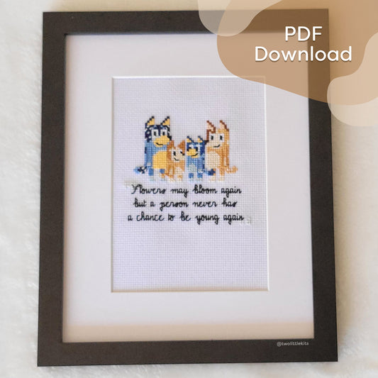 The Heeler family in cross-stitch form. The TV show, “Bluey” has been adored by my little...