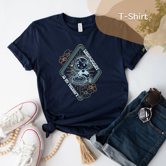 Stitch in Style: 'Embroidery is my therapy' T-shirt Indulge in the therapeutic art of embroidery...