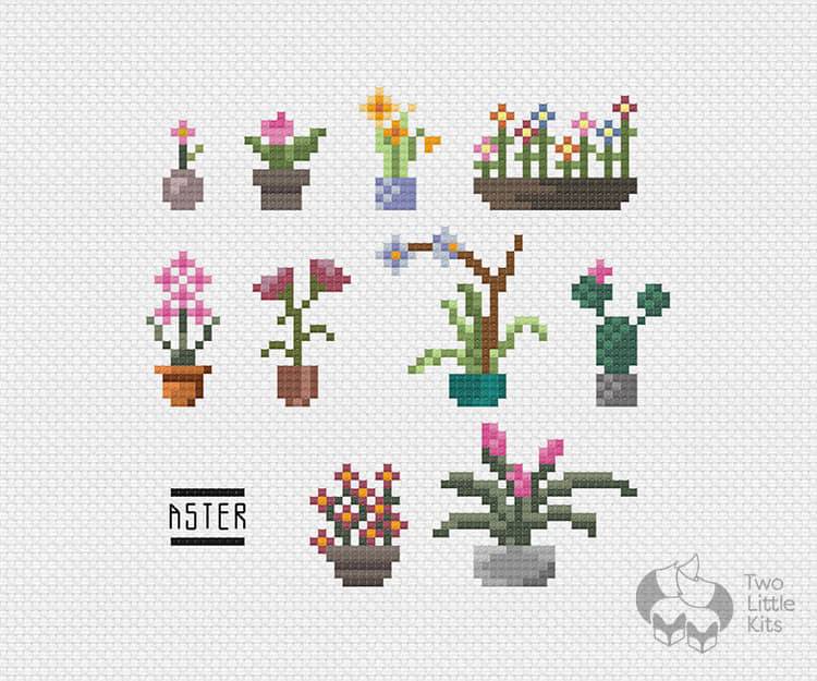 "Aster" - Cross-Stitch Decor Element