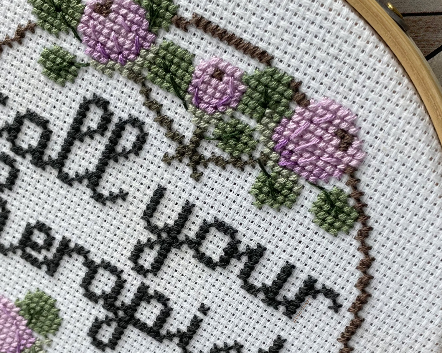 - Finished size: 4.3" x 4.6" when using 14ct Aida cloth.