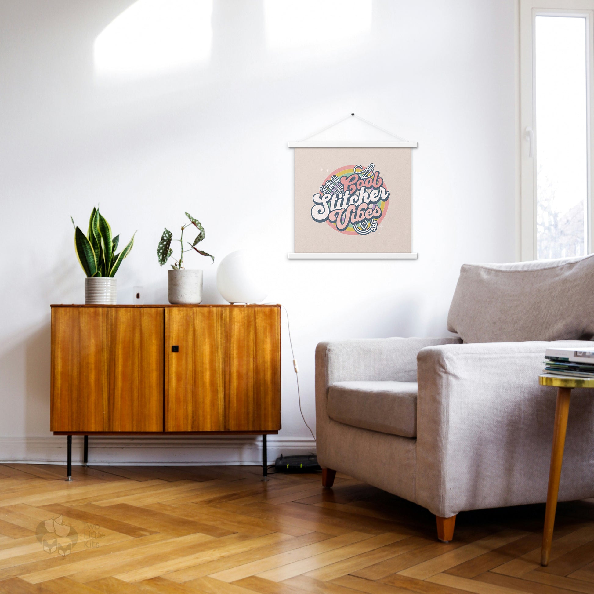 Transform your space into a sanctuary of creativity with our "Cool Vibes" Stitching Design Wall Hanging Poster. The pastel rainbow and line-art stitching supplies come to life on this poster, turning your walls into a haven of mindful inspiration. Let the words "Cool Stitcher Vibes" echo in your space, encouraging you to embrace the beauty of slow, deliberate creation with each glance.