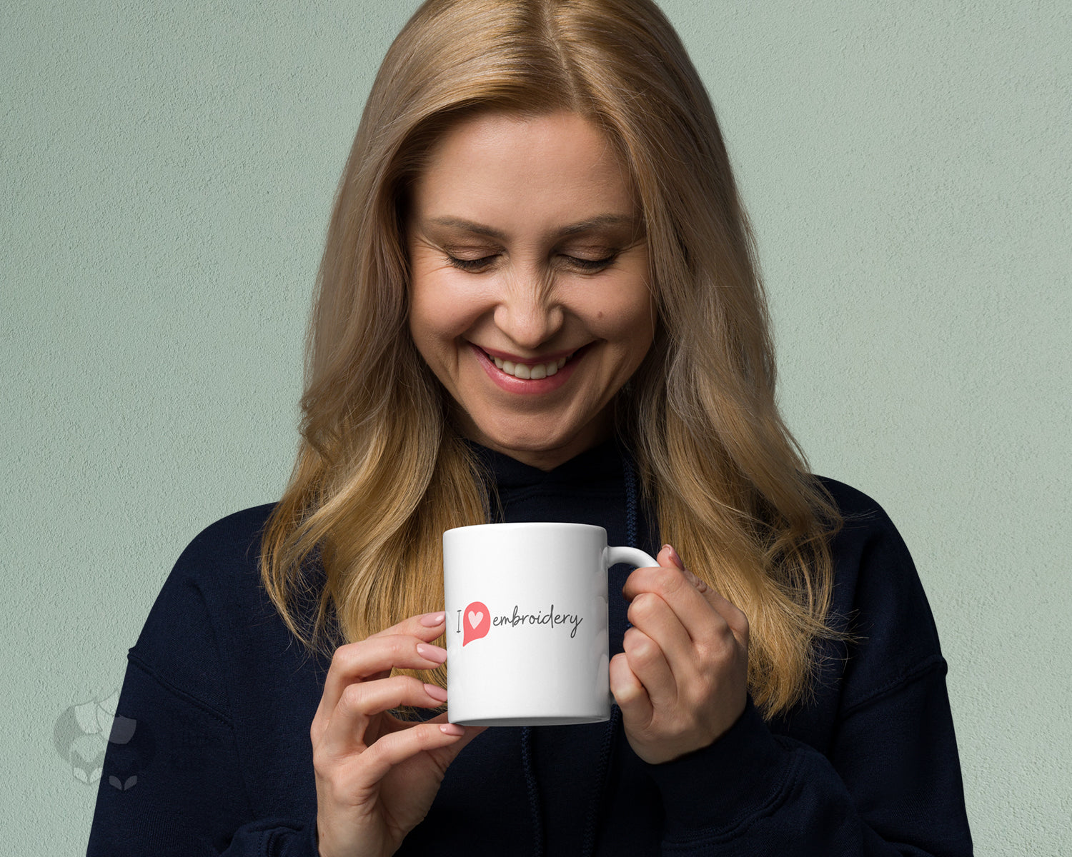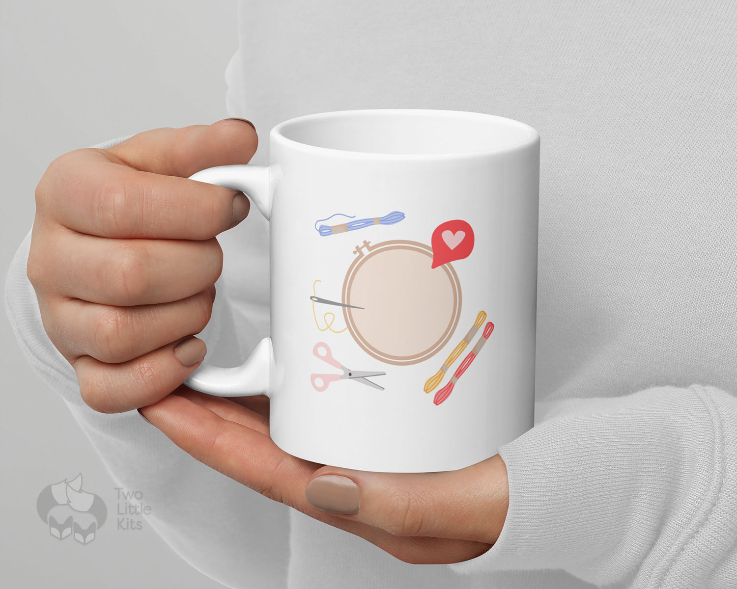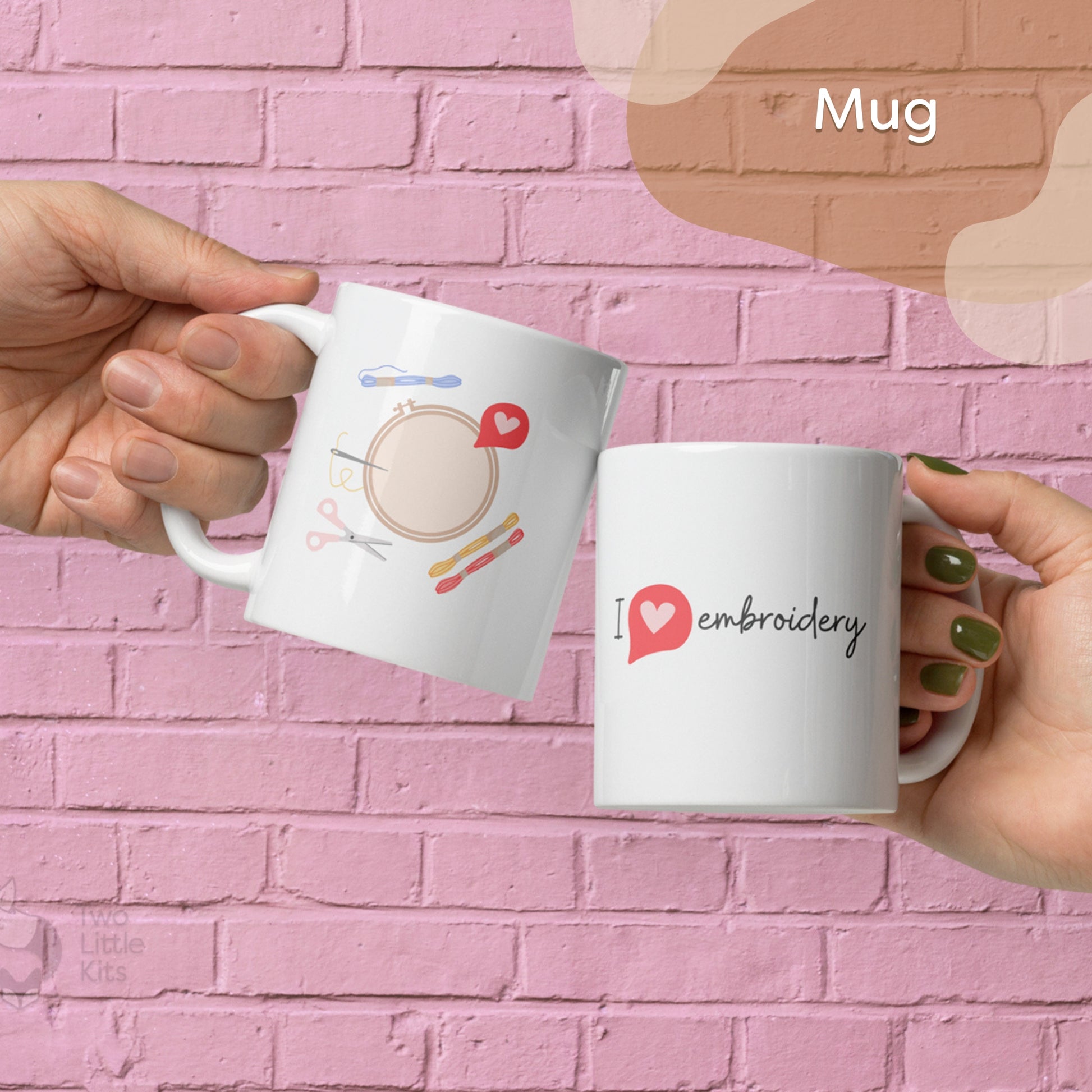 "Embroidery Love" is your new favourite mug. It's sturdy and glossy with a vivid print that'll withstand the microwave and dishwasher. The print on the front is simple and not over-powering. What more could you look for?