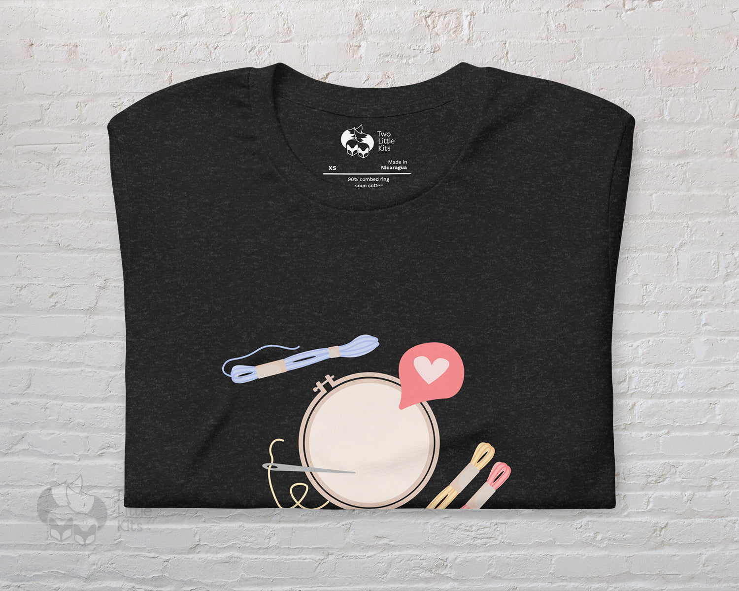 "Embroidery Love" is your new favourite t-shirt. It is everything you've dreamed of and more: soft and lightweight, with the right amount of stretch. It's comfortable and flattering for all. The print on the front is simple and not over-powering, and can be styled up or down. In three basic colours, what more could you look for?