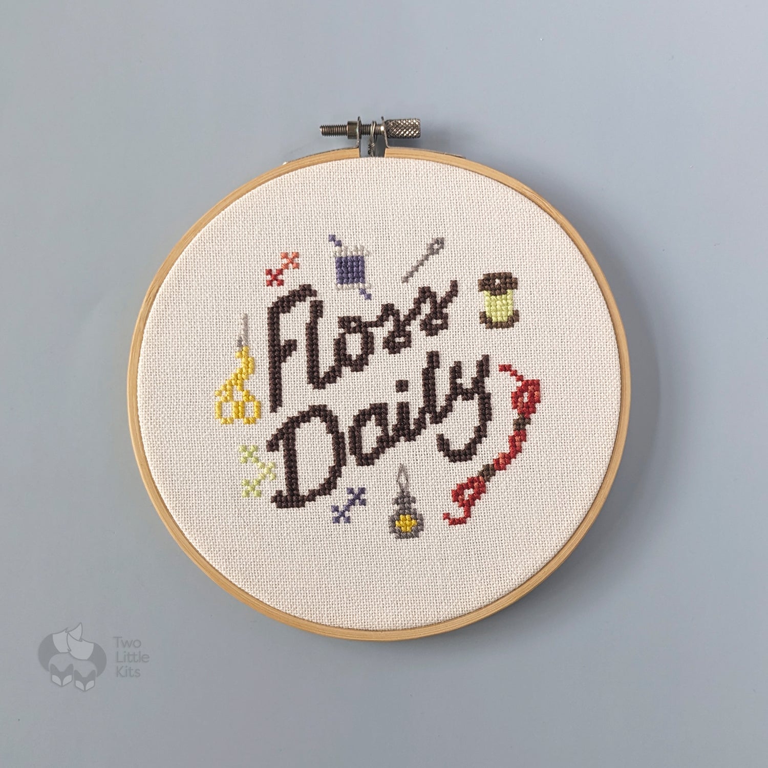 Need a pretty, daily reminder to stitch every day, along with a dash of punny humour? My "Floss Daily" cross-stitch kit is just what you need! It's beginner-friendly, veteran-approved and enthusiast-enjoyed! Perfect as a Christmas or birthday gift for someone wanting to try cross-stitch as a hobby.