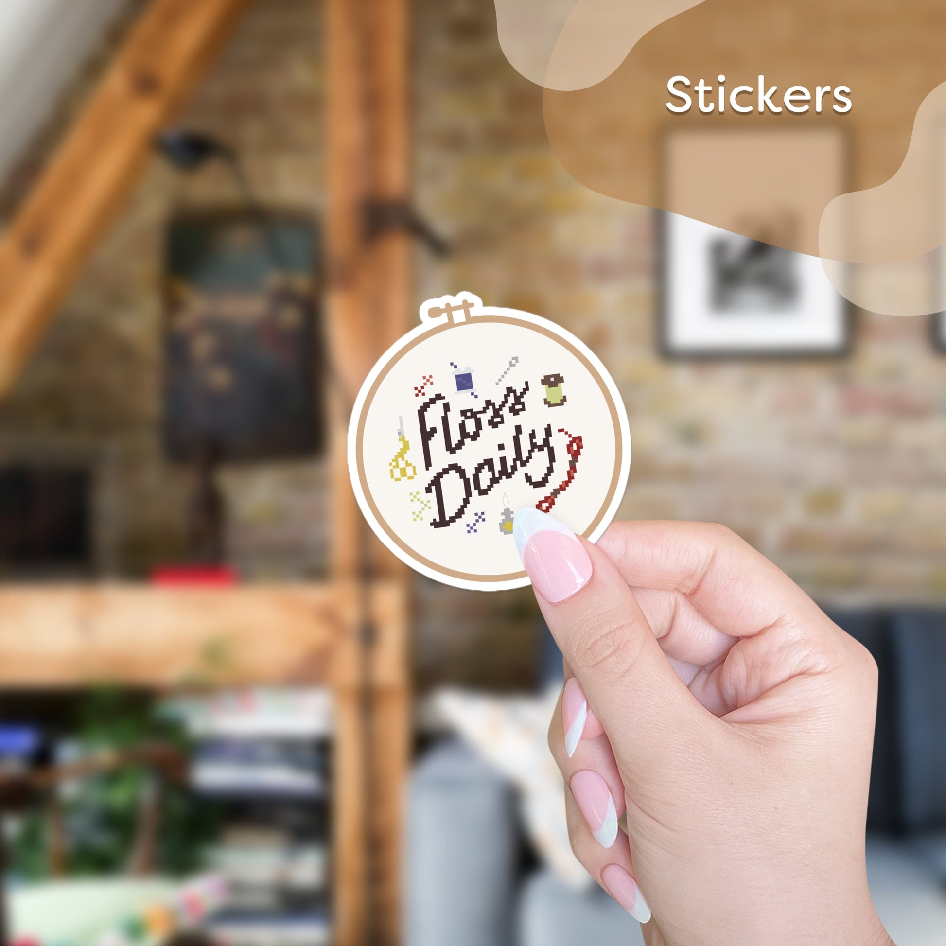 Based on my cross-stitch pattern of the same name: "Floss Daily", this sticker is here to bring some stitchy joy to your life. No matter where you decide to put this high-quality, vinyl sticker, it's sure to cheerily remind you to stitch. Decorate your laptop, water bottle, or notebook with some adorable designs, and make everything a little more special.