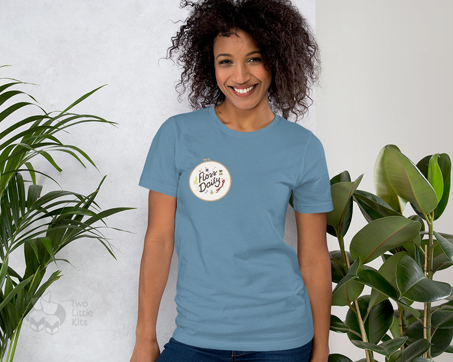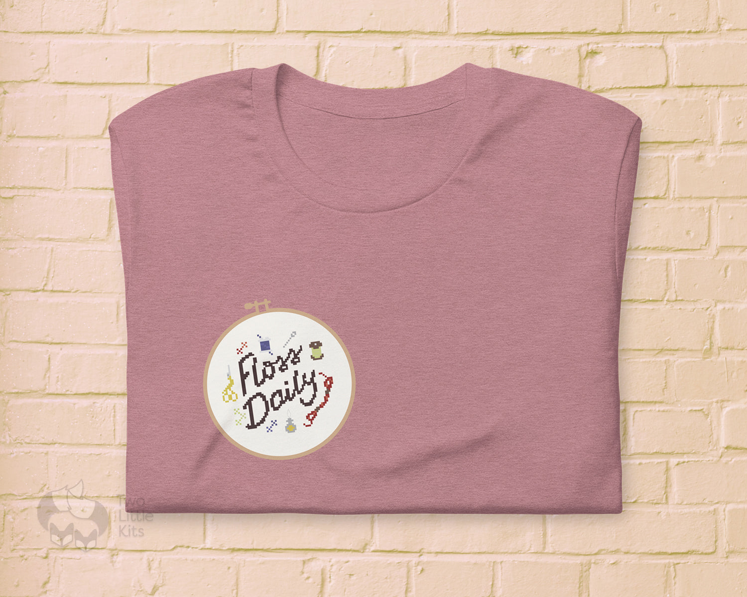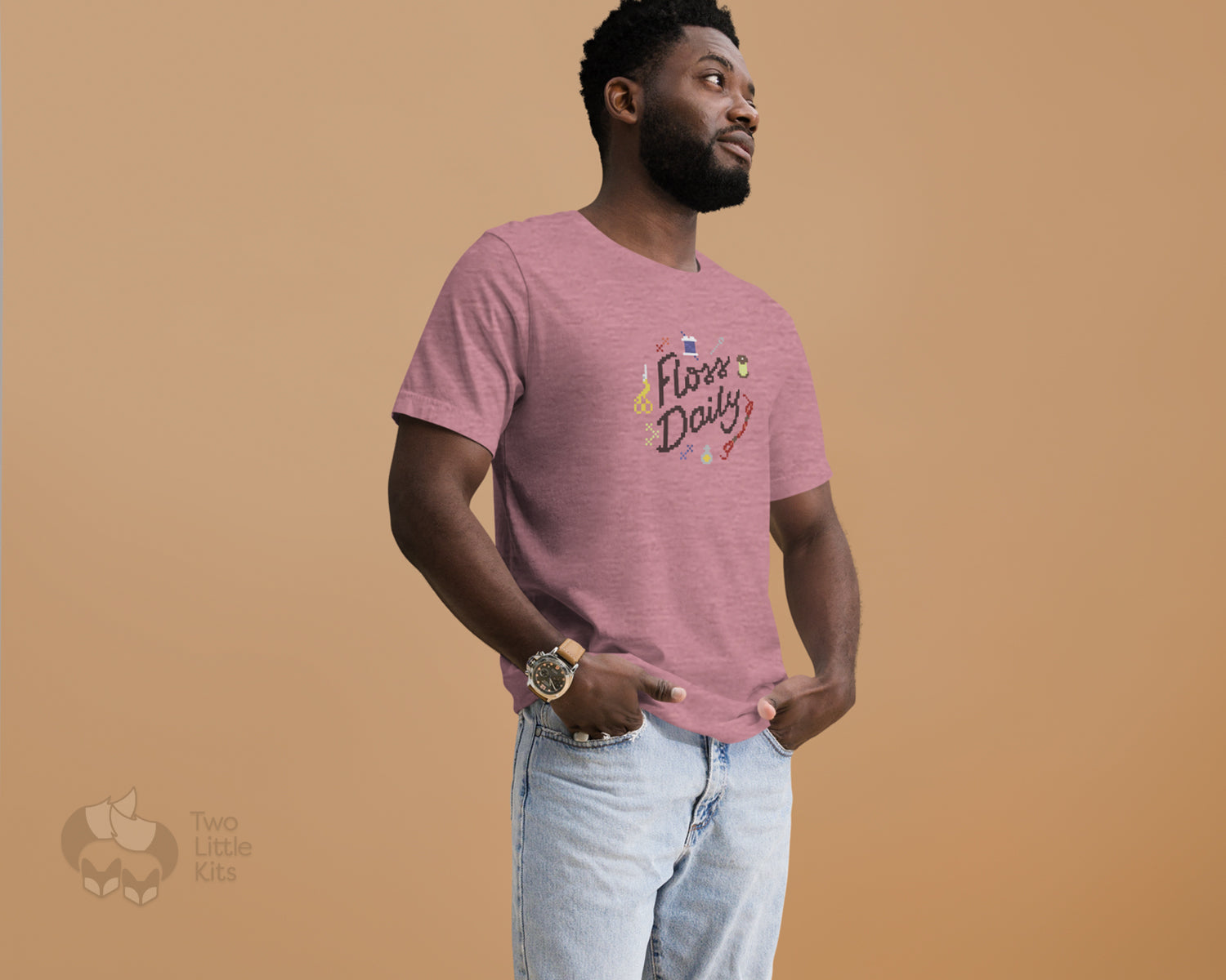 Based on my cross-stitch pattern of the same name: "Floss Daily", this tee is soft and lightweight with just the right amount of stretch in all the right places. It's flattering and comfortable for everyone.