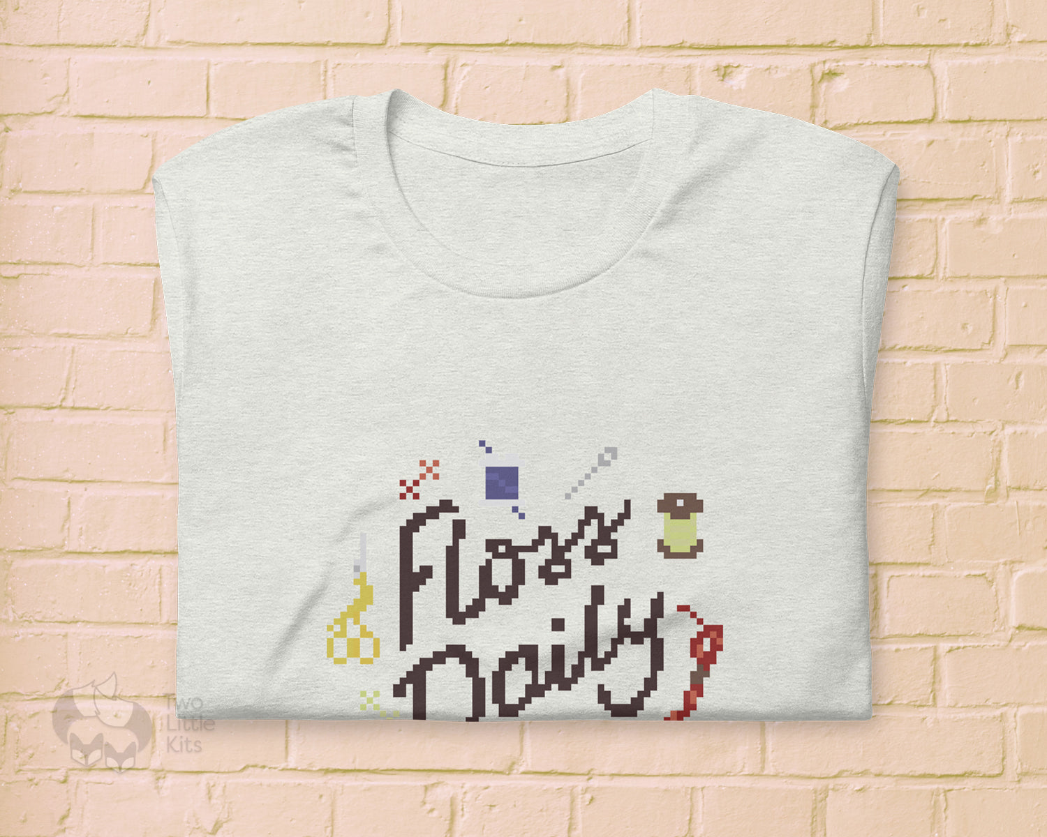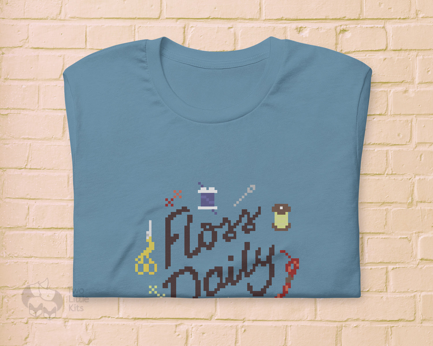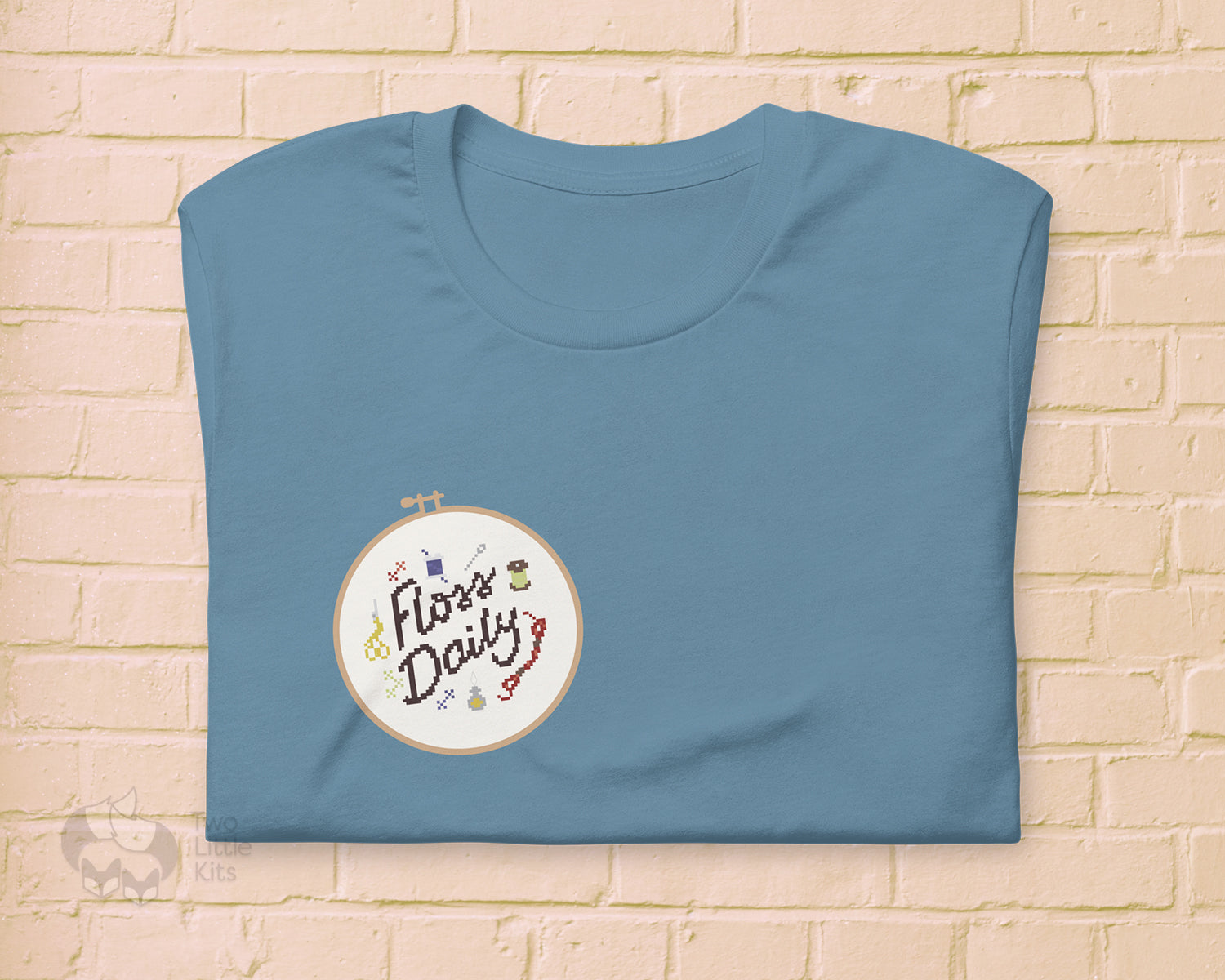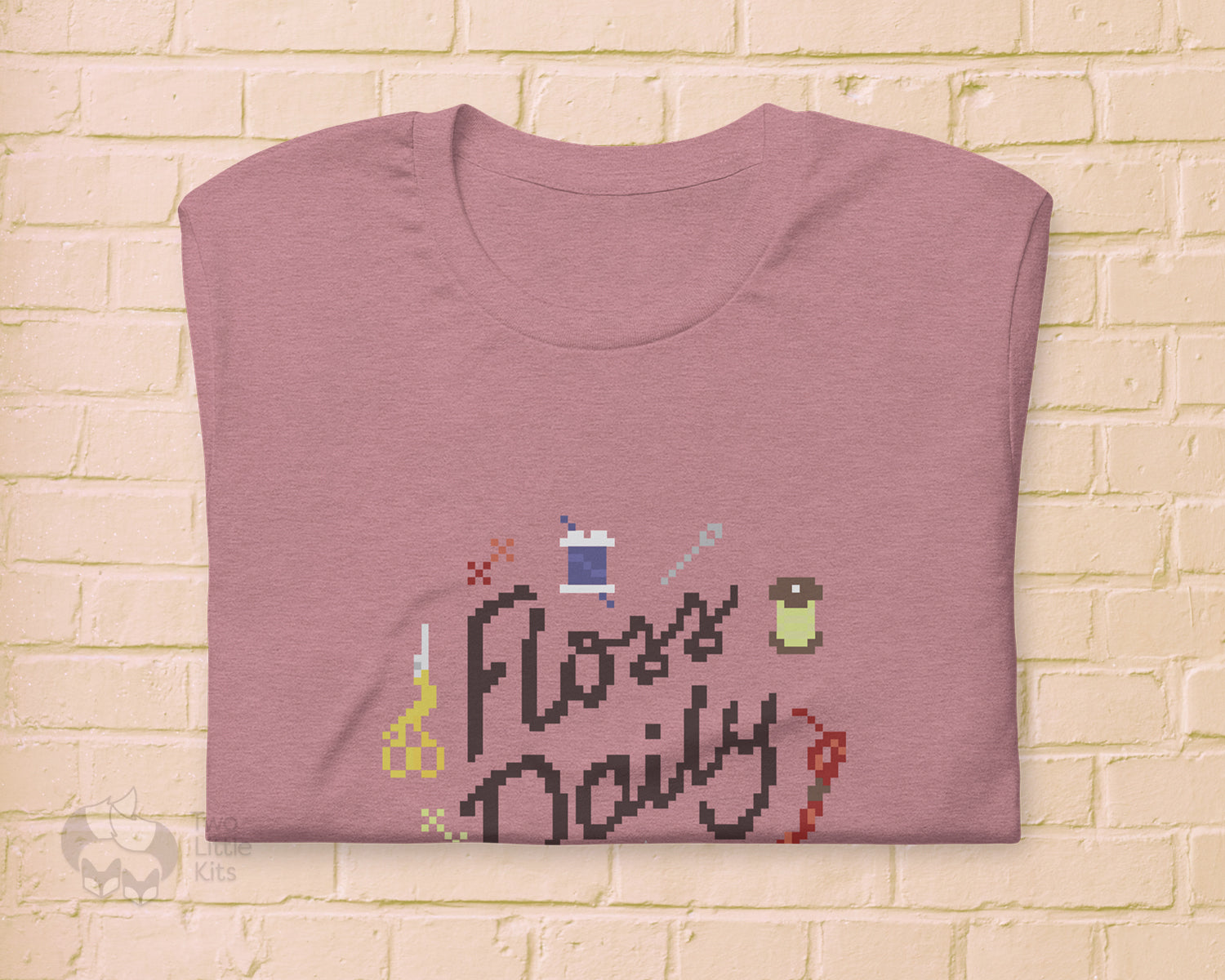 Based on my cross-stitch pattern of the same name: "Floss Daily", this tee is soft and lightweight with just the right amount of stretch in all the right places. It's flattering and comfortable for everyone.