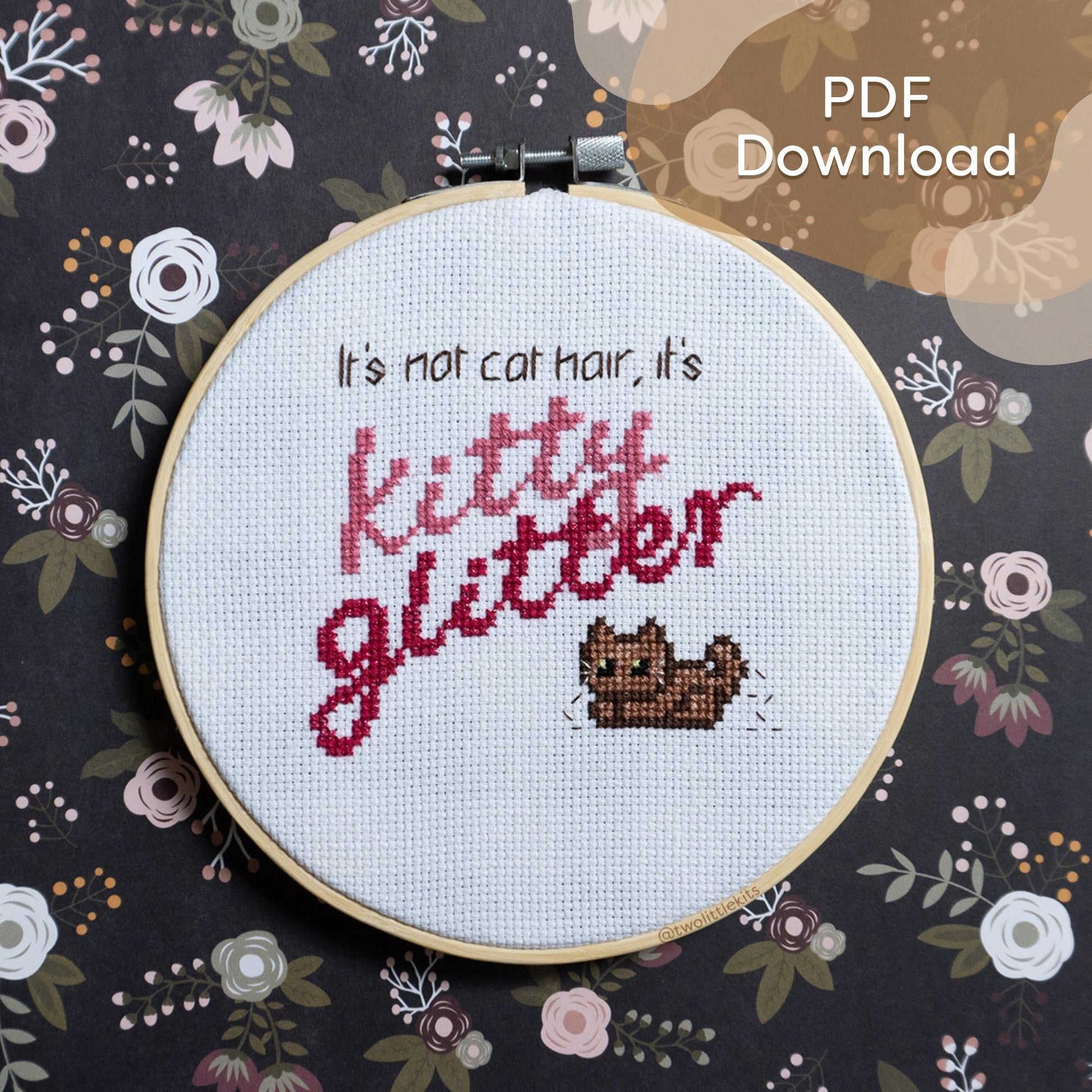 This piece uses the awesome DMC floss, Étoile to further enhance the “glittery” feel of the message. Stitch it for yourself or a fellow cat-slave you know and love.