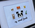 This pattern displays the following in-game animals (Top-right to bottom-left): Calico cat, fox, ocelot, brown rabbit, panda and blue parrot.
