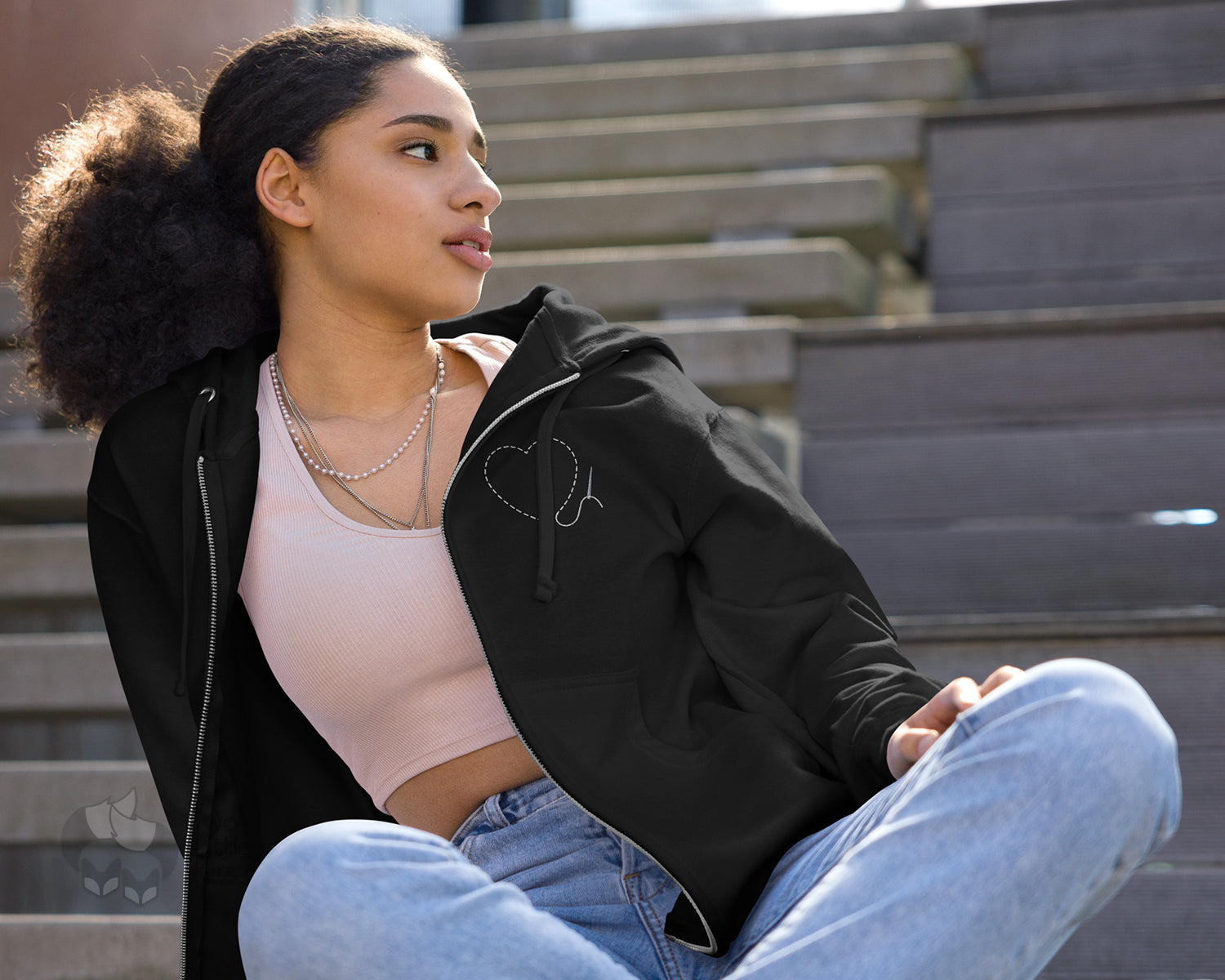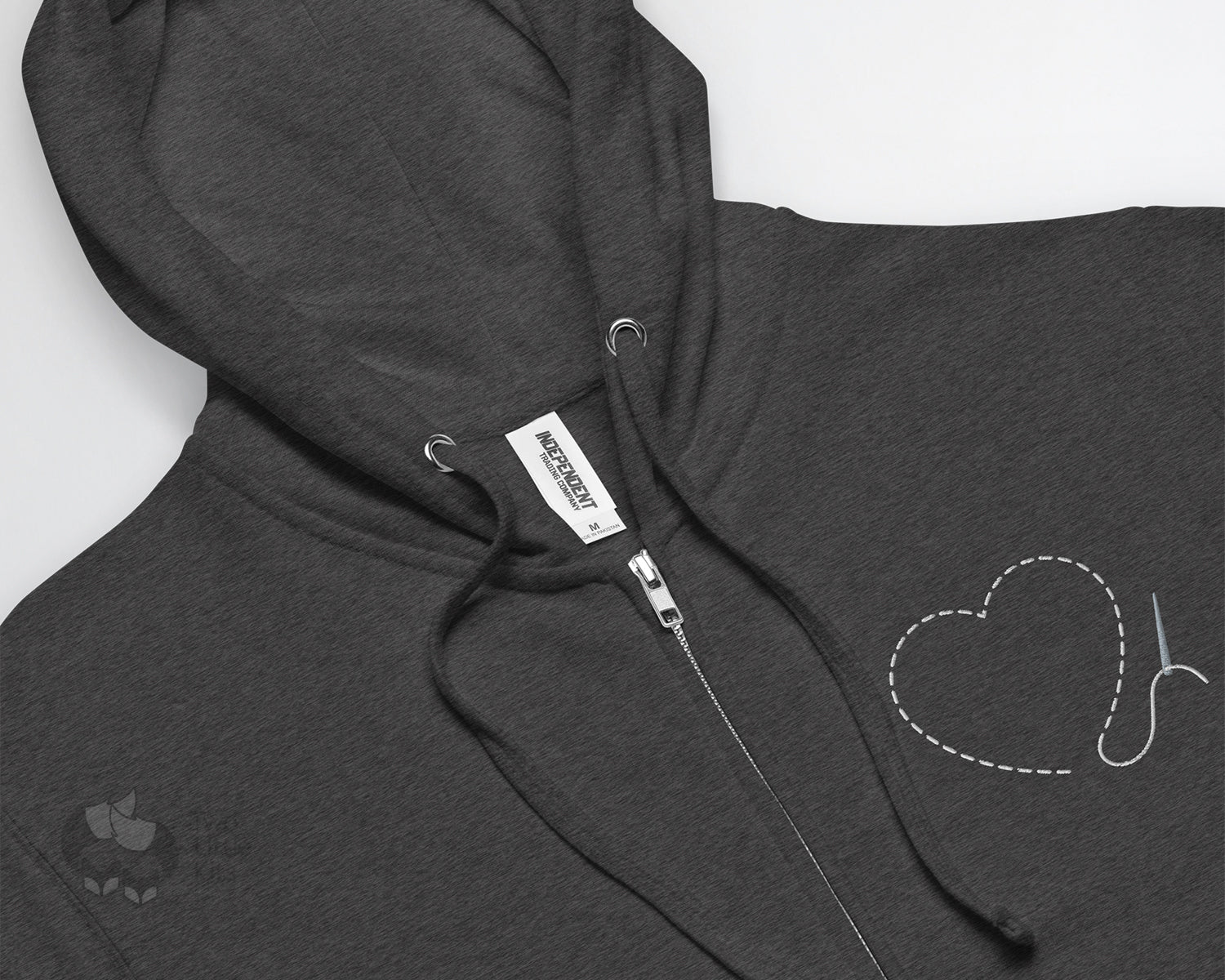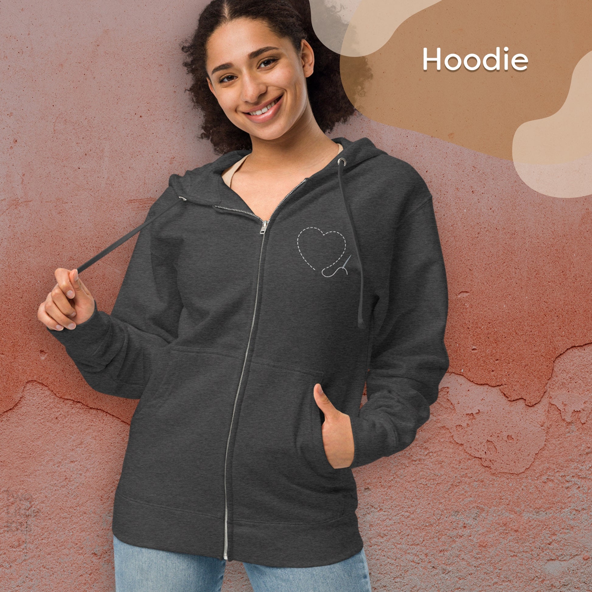 Wrap yourself in the warmth of creativity with this zip-up hoodie, a tribute to the art of needlepoint. Crafted from a plush 80% cotton, 20% polyester blend fleece, this hoodie is not just a garment; it's a canvas for your passion. The heartwarming touch lies in the nod to the endless threads of inspiration that fuel your artistic soul - a running stitch heart on the left breast of the hoodie itself. The 100% cotton face ensures a soft and comfortable feel against your skin, while the jersey-lined hood adds an extra layer of cosiness. Wear your heart on your sleeve, or in this case, over it, as you embrace both comfort and craftsmanship in this uniquely designed zip-up hoodie.