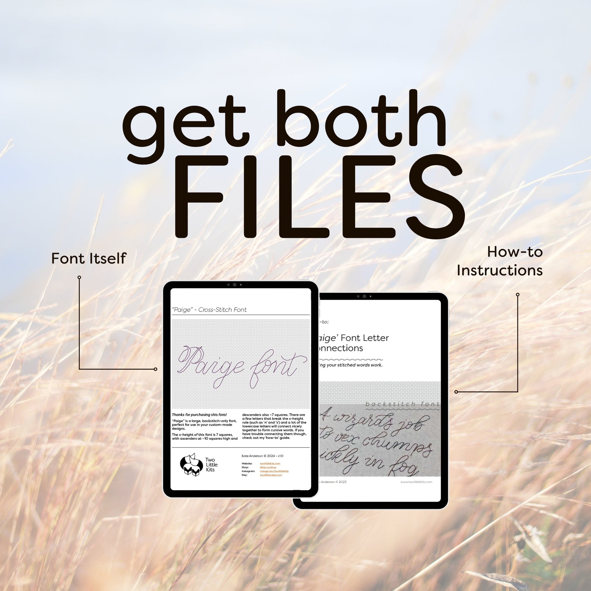 By purchasing the license, you are granted a non-exclusive, non-transferable license to use a single cross-stitch/backstitch font (in this case: Paige) for your own sellable pattern design. All copyrights and intellectual rights are retained by Kate @ Two Little Kits.