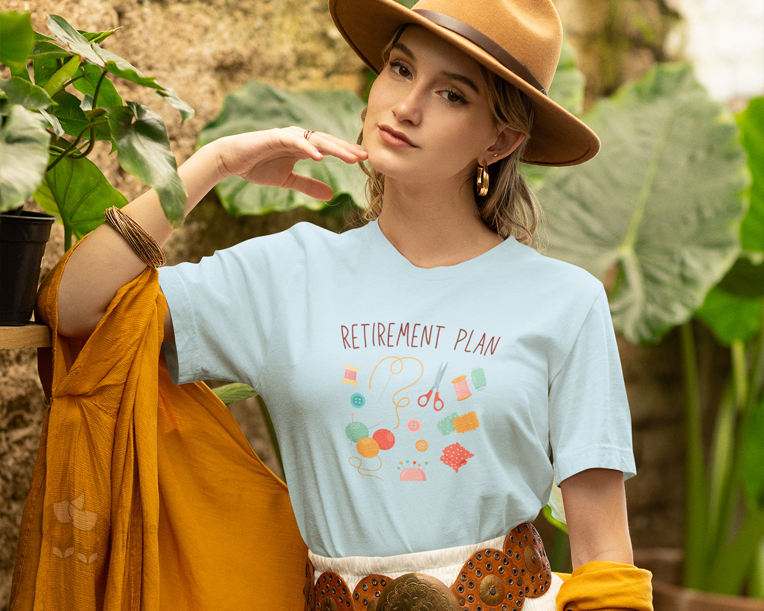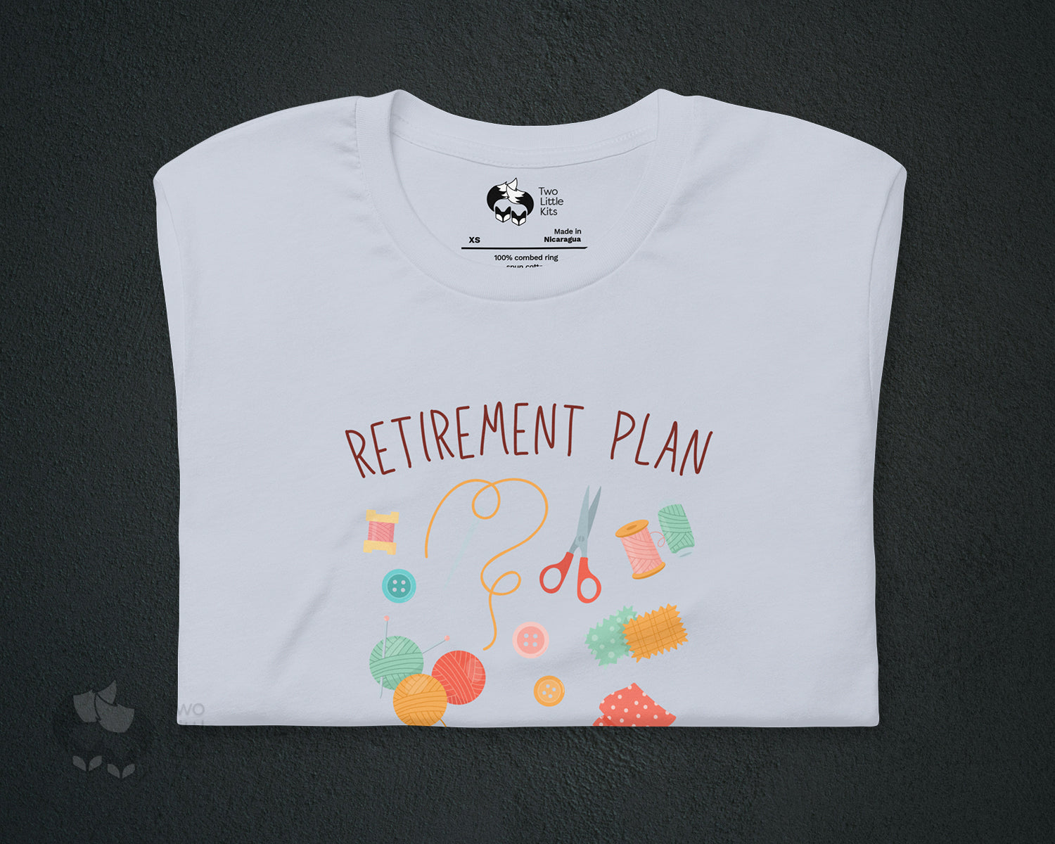 Indulge in the notion that your retirement plan involves a canvas, a needle, and the soothing rhythm of stitches. The collection seamlessly weaves together iconic symbols of stitching supplies, creating a charming narrative that speaks to the heart of every crafter. For those who prefer to take their retirement plan on the go, this tote bag provides ample space for all your stitching essentials.