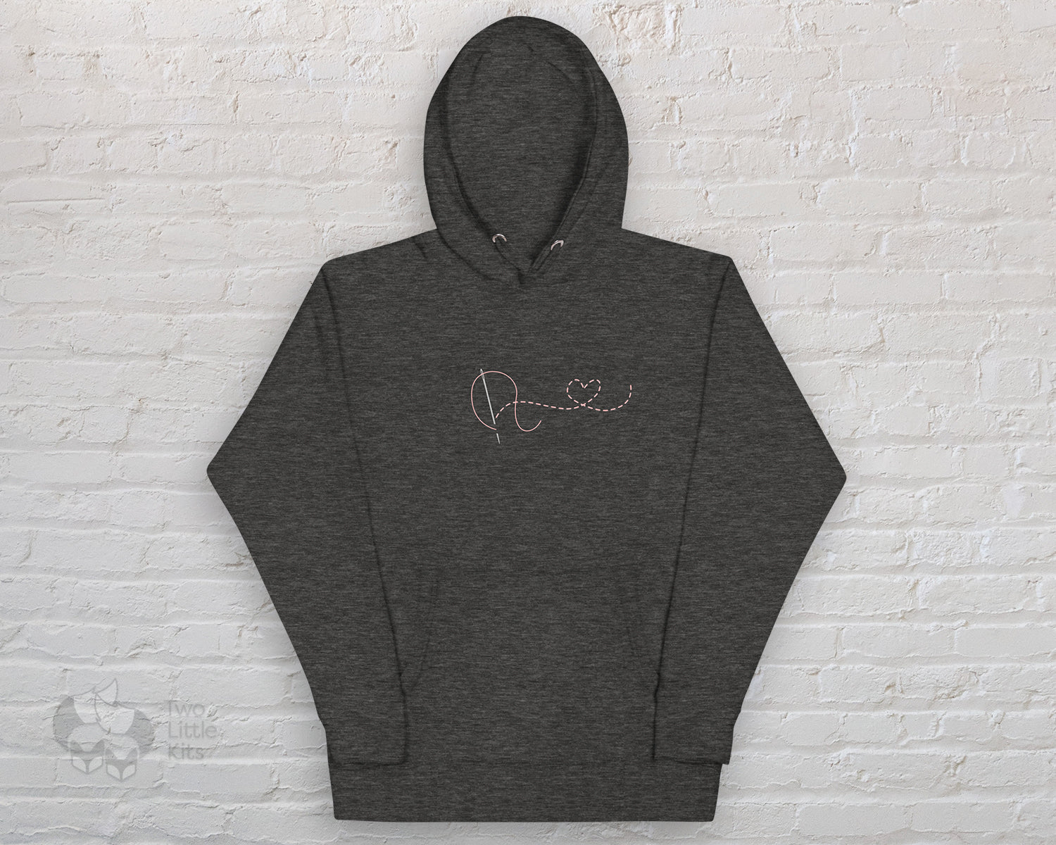 Indulge in the rhythmic flow of your craft with this hoodie with a sweet, screen-printed running stitch design. The undulating pattern gracefully converges to form a heart at the centre, symbolizing the love woven into every stitch. Crafted from a premium blend of 65% ring-spun cotton and 35% polyester, this hoodie combines comfort with artistic expression. The spacious front pouch pocket is not just a practical detail but a cozy sanctuary for your hands. Elevate your crafting experience with a garment that mirrors your passion and creativity.
