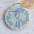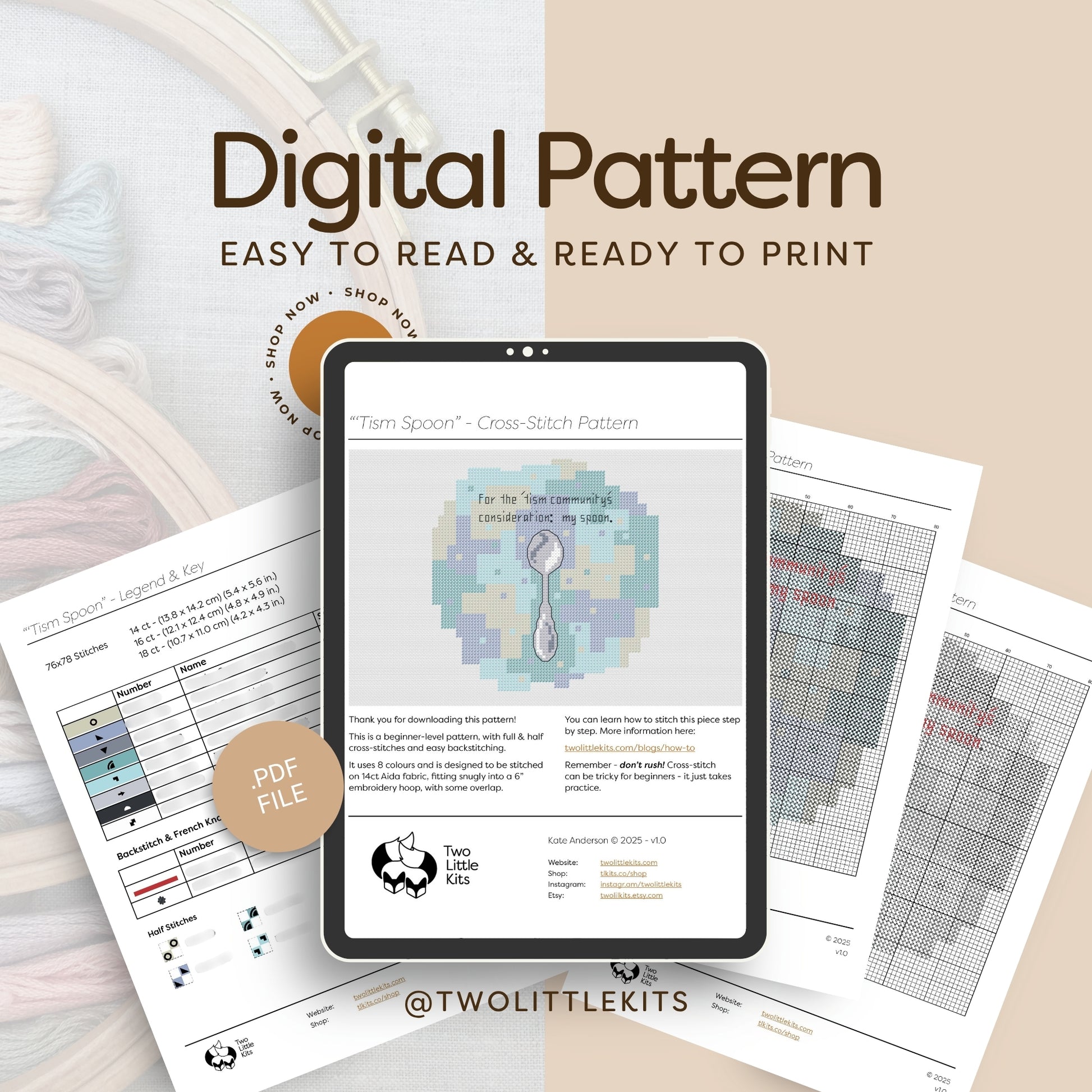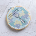 Available as a digital PDF pattern, "'Tism Spoon" is a quick yet meaningful project that can add a touch of neurodivergent pride and charm to your wall or hoop collection.