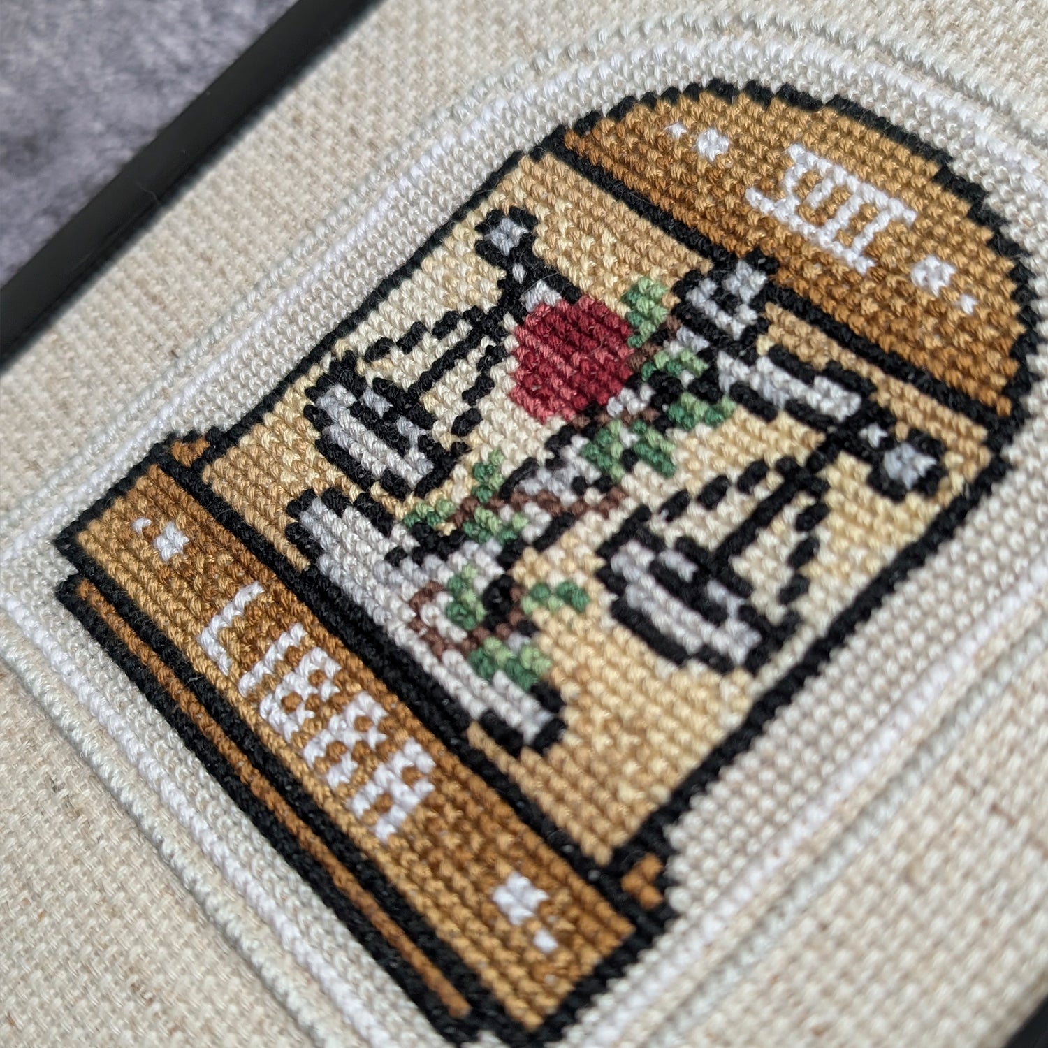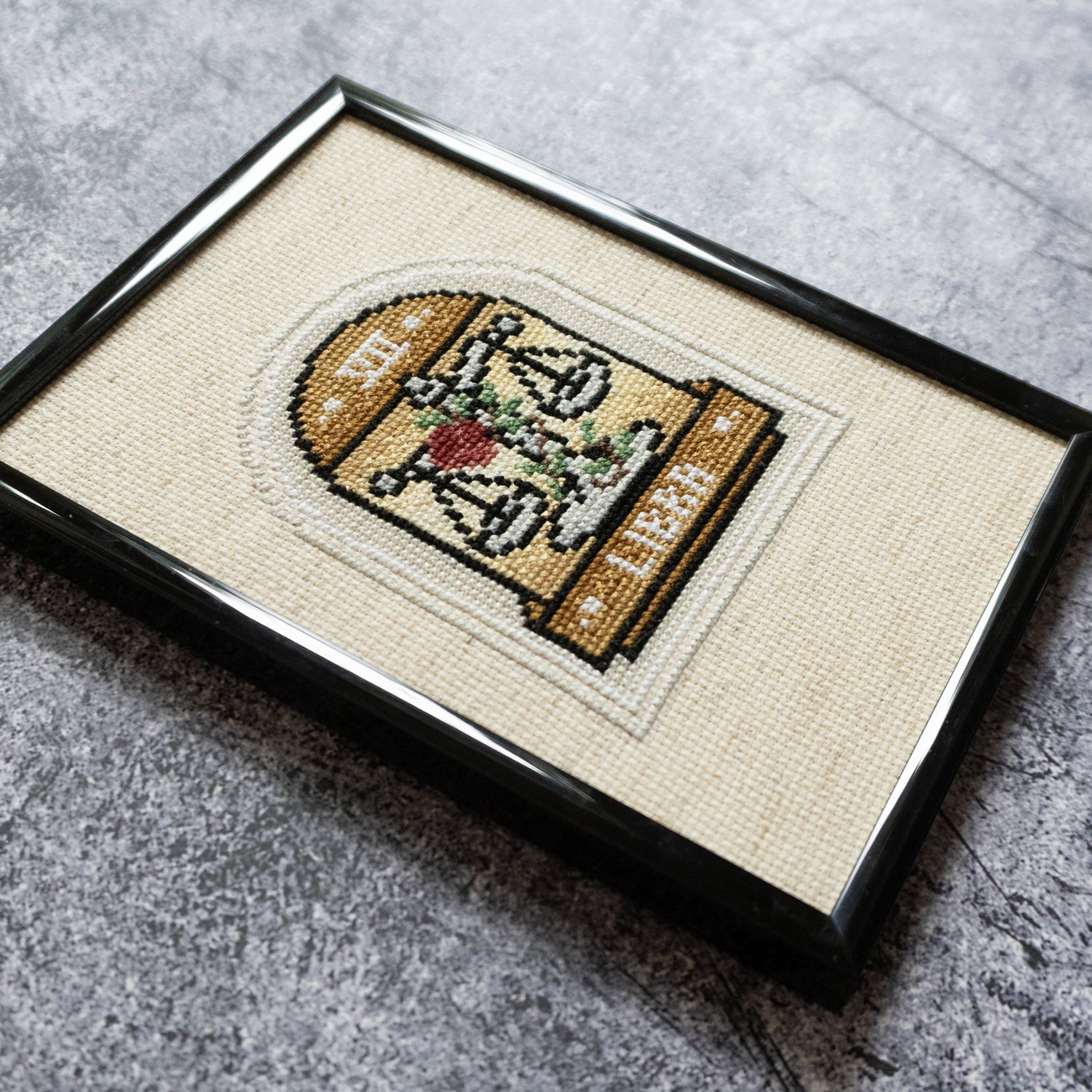 The finished piece fits neatly in a 5"×7" frame when stitched on 14ct Aida and uses just 14 DMC colours. Like the rest of the Zodiac series, it’s entirely cross-stitch — no backstitch or specialty stitches — making it approachable for confident beginners while still rewarding for experienced stitchers.
