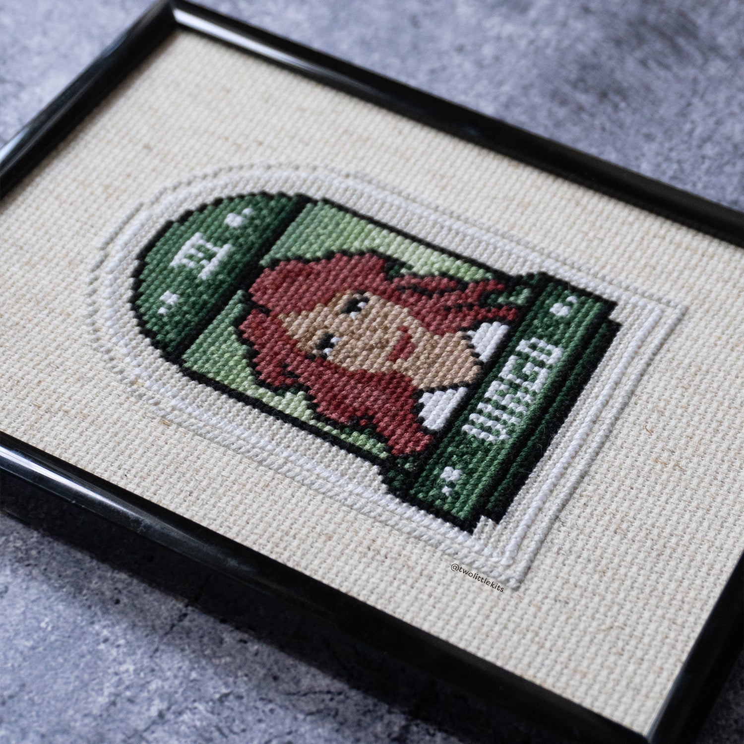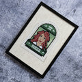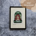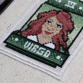 Grounded, thoughtful, and quietly powerful, Virgo comes to life in this vintage tarot-inspired cross-stitch design. A poised woman with rich, wavy red hair gazes outward against a deep green backdrop, "crowned" with the Roman numeral Ⅵ and framed by a banner that proudly bears her name.