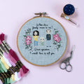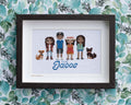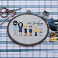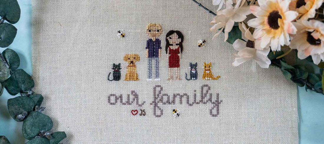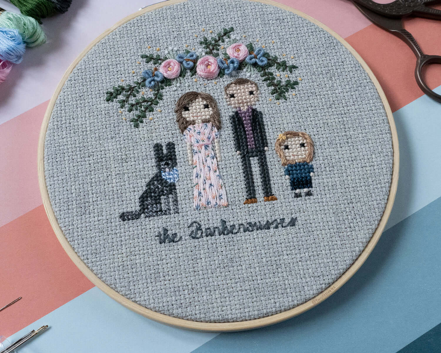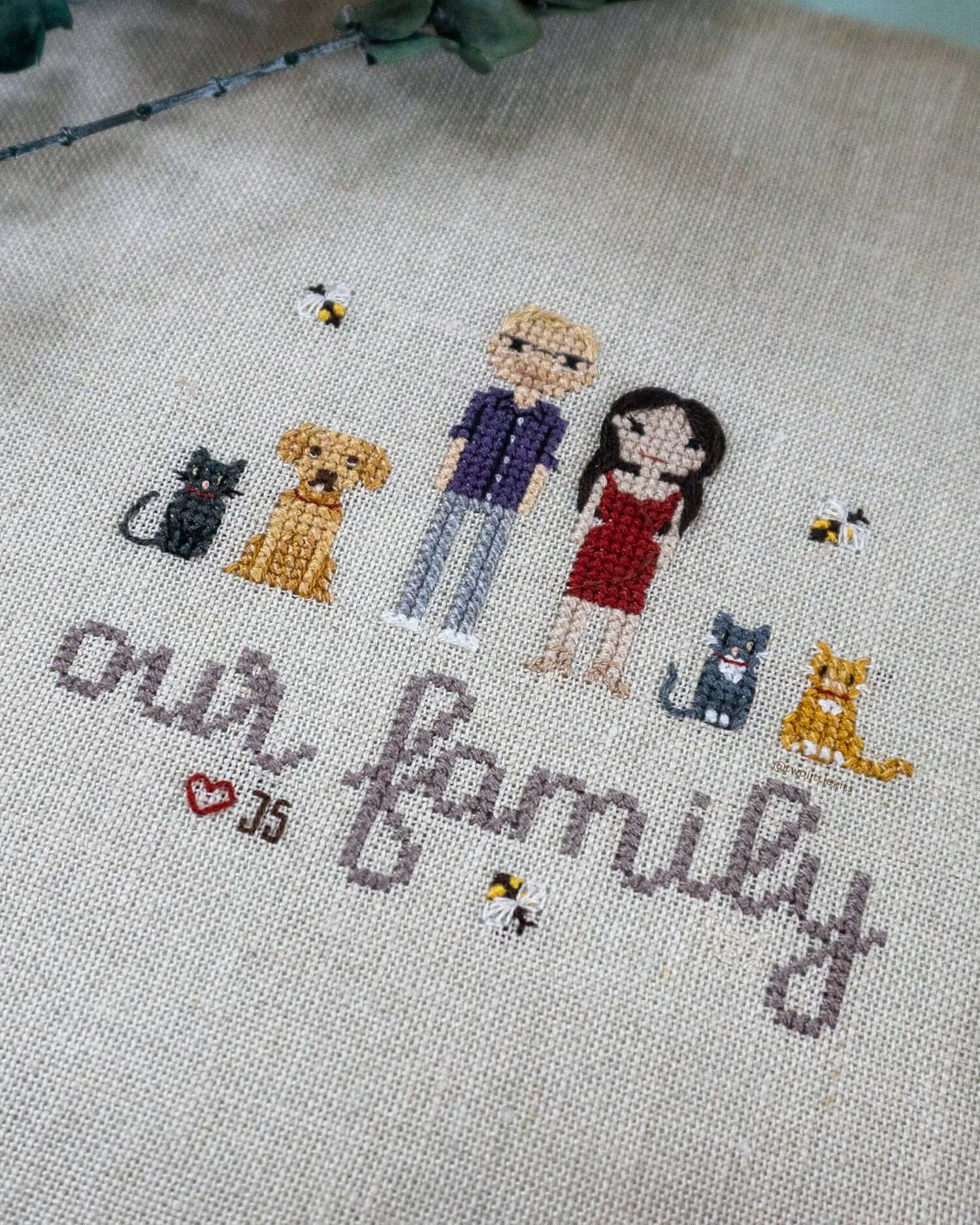 This listing is for one custom, hand-stitched, cross-stitch (and embroidered if appropriate) portrait piece. You'll receive a finished portrait of up to 8 total characters. A stitched portrait makes for a wonderful birthday gift, commemoration piece, snapshot-in-time or even just a treasured "just because" present.